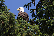 | Unsere Kanada Reise startete in Vancouver, Britisch Columbia und ging dann im ersten Teil über Victoria nach Ucluelet und Tofino auf Vancouver Island. Einen Bald Eagle, also einen Weißkopfseeadler wollte ich unbedingt sehen und sozusagen formatfüllend fotografieren. Große Hoffnungen hatte ich entlang der Küste im Pacific Rim National Park. Dort haben wir sie aber nur in großer Entfernung beobachten können. Immer war ich dazu mit der EOS 7 D Mark 2 und dem 100-400 L Objektiv unterwegs. Am Mittag zum Essen in Tofino dachte ich, ich bräuchte die lange Brennweite nicht. Aber ausgerechnet in Tofino direkt an einer Straßenkreuzung saßen zwei Bald Eagle ganz entspann in einem Baumwipfel und beobachteten das rege Treiben. Glücklicherweise war das in der Nähe des geparkten Auto und ich konnte die Ausrüstung noch schnell tauschen ... |